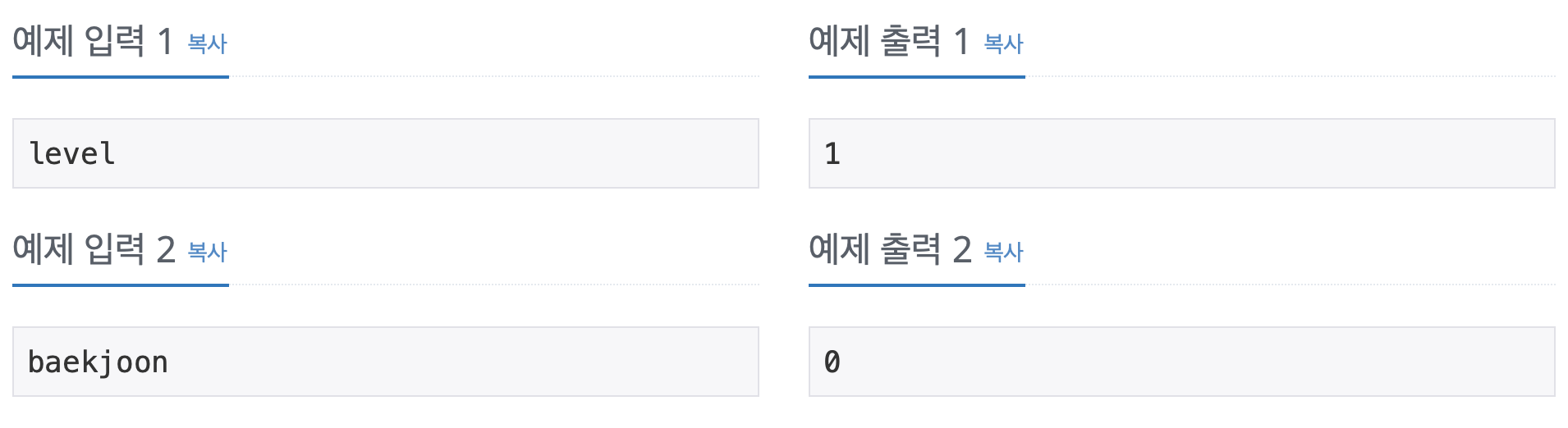 level, noon은 팰린드롬이고, baekjoon, online, judge는 팰린드롬이 아니다.